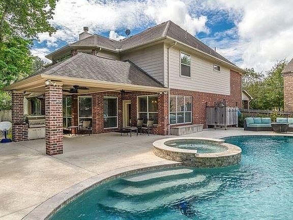 Stunning 5 Bedroom home in Impeccable condition with a private, resort backyard on a huge cul-de-sac lot. Enjoy the large covered back porch, built-in grill, tons of cool-decking, Rock Waterfall Pool (added in 2015), outdoor shower, and huge lot (16,210 lot size). Extensive wood floors in the entry,dining,study,living room,Kitchen. Open floorplan with High Ceilings. Oversized study with wainscoting, Large dining room, 2-story living room with beautiful stone fireplace. Massive Kitchen with lots of cabinets and countertop space,double ovens, stainless steel appliances, large pantry, built-in desk area between kitchen and dining room to store all your papers. Large master bedroom and master bath with lots of built-ins in the closet. Upstairs features 4 generous sized bedrooms, built-ins in the closets, a Huge closed in gameroom, and built-in desk area upstairs! Huge laundry w/ MUD area, lots of storage space,3 car garage. This is a rare gem!