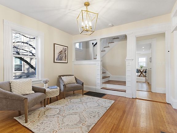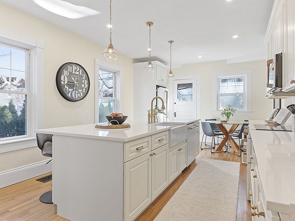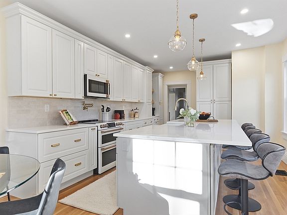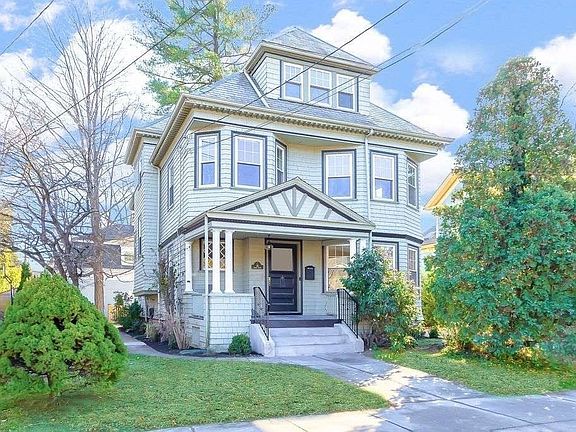 Welcome to this beautifully renovated turn-of-the-century Victorian home located on the carriage lane in Newtonville, where timeless charm meets modern luxury. This spacious 5-bedroom, 3.5-bathroom home has been meticulously updated to combine historic character with contemporary comforts. The chef’s kitchen is the heart of the home, featuring a 10’ island, Café appliances, pot filler & a custom coffee bar. Off the main living room, a wet bar with a brick fireplace leads to a grand formal dining room, perfect for entertaining. The main bedroom suite offers a large bedroom, a sitting room/office combo, & a luxurious bath with Kohler fixtures, custom glass, and high-end marble and ceramic tile. Original refinished hardwood floors, 2 fireplaces, a front porch, & a bluestone patio add to the home's charm. Modern amenities include central A/C & a durable slate roof. This exceptional Victorian home offers the perfect blend of old-world charm and modern updates.