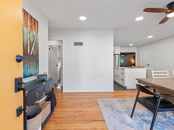 Nestled at the base of Vincent Bluff Nature Preserve, this beautifully renovated 2-bedroom home offers a wonderful blend of fresh updates, original charm and natural surroundings. Nearly every surface in the home has been updated since spring 2024. The kitchen shines with custom cabinetry, quartz countertops, new appliances, and sleek vinyl tile floors. The spacious ''grand room'' addition is now a cozy retreat, complete with new carpet and a fully serviced wood-burning fireplace--perfect for those fall and winter nights coming up! The bathroom is entirely new with a tiled shower and new tub, sleek vanity and front lit LED mirror! A private trailhead awaits you in the backyard leading to some of the best hiking and views in the metro area! Don't wait on this one!