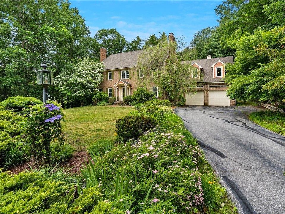 Location, location, location...this beautiful 4 bed, 2 1/2 bath colonial is situated in a prime location in Bedford. Maiden Lane, is a quiet cul-de-sac neighborhood off Brick Mill Rd. This one owner home has been loved for many years and has much more love to give. This home has plenty of space and charm. The two fireplaces, one wood, one gas compliment the two large rooms on the first floor. The formal dining room has a veranda accessed through French doors. A second set of French doors lead to a brick patio off the four season sunroom porch that have two automatic skylight windows. The laundry room is located on the first floor but there are hookups on the second floor if that suits you better. The primary suite bathroom has heated tile floors and a large sprawling tile walk-in shower with plenty of light from the skylight and vaulted ceiling above. The hardwood floors in the primary continue towards the catwalk and walk-in closet with custom shelving. This dressing room area connects to additional office/den space over the large two car garage. The three other bedrooms have fresh new carpet. This home has a full unfinished basement and built in stairs to a full attic, either finished would make the home 5,000+- Sq ft. This home is waiting for its new owner to show the same love to it and bring out its fullest potential, come join the neighborhood.