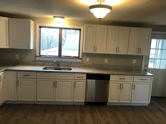 Newly renovated home - new kitchen(cabinets, granite counters, SS appliances), new bathroom, refinished hardwoods, new vinyl flooring and new carpeting for upstairs bedrooms. Freshly painted inside and out. Basement was finished for added space with kitchen and bath. Newly paved driveway. Large garage with metal roof - idea for hobby or business. Large yard for gardening or any other use.