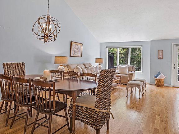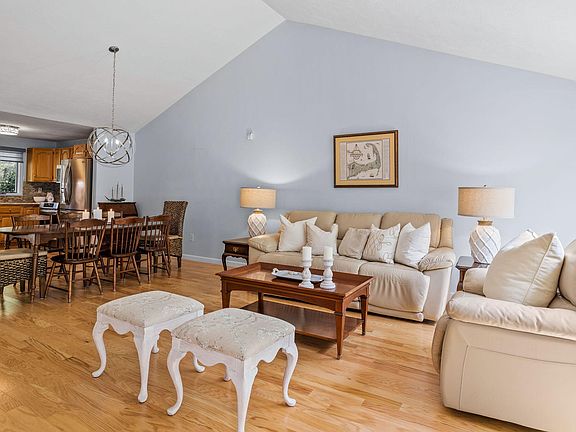 A SouthPort Stunner! Popular Provincetown style duplex recently renovated to wow! Cathedral ceiling, open-concept living/dining leads to new-this-week deck overlooking leafy green woodlands. Gorgeous hardwood and tile flooring, Quartzite countertops, stainless steel appliances, induction range, huge Kohler sink, gas fireplace, new Nest thermostat, main-floor living. End unit with windows galore, nestled on a cul de sac. Lower level walk-out offers family room, bonus room, storage, and mechanicals - 2019 furnace/central AC and 2023 hot water heater. Plus all the amenities Upper Cape's sought-after SouthPort 55+community offers: outdoor pool, year-round indoor pool, golf, tennis, pickleball, shuffleboard, bocce, club house, Village Center, weight and cardio room, woodworking shop, billiards and more! Something for everyone, with Johns Pond and Mashpee Commons nearby! Come live the Cape Cod dream!