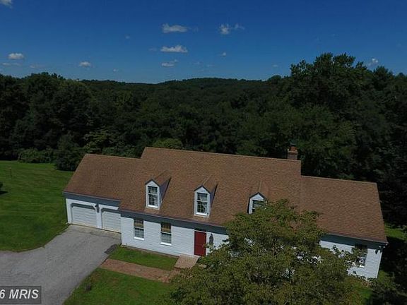 Immaculate Monkton Cape on 2.5 acres. Historic decor and detail incl Cushwa brick, gleaming hardwood, oversized windows, plantation shutters, chair rails, built ins, custom wood trim & moldings. Bright / open kitchen w/ center island leads to lg covered porch overlooking country hilltops. Cozy den w/ wood FP. Main level master w/ separate bath & walk-in closet. Lg unfinished, basement. Generator.