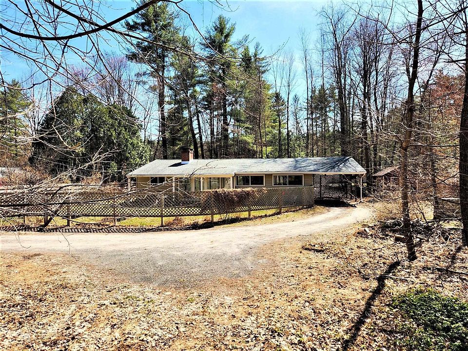 Welcome to this charming midcentury 3 bedroom, 1 bath house located just outside the heart of Woodstock! This property offers a unique blend of vintage charm and modern amenities. As you enter the home, you'll be greeted by a cozy living room with a wood-burning fireplace, featuring large windows that fill the space with natural light. The original hardwood floors throughout the home add character and warmth to the space. The open concept living and dining area is perfect for entertaining guests, with ample room for both relaxation and dining. The kitchen was renovated a few years ago and ready for your upgrades. The previous owner designed and created the art studio with their passion for painting in mind, and now it's your turn to bring your artistic vision to life. The three bedrooms are at the end of the hall, each with nice natural light. The bathroom has been renovated and boasts a modern design. Outside, you'll find a private backyard oasis with a pond that has 2 mini waterfalls and mature trees, perfect for outdoor entertaining or just enjoying a quiet morning coffee. The home also features a one-car carport and a spacious driveway, providing off-street parking. Next to the carport is the shed which has storage for all your outdoor gear. Located in the desirable Woodstock area, this home is just minutes away from local shops, restaurants, and entertainment. Take a stroll through the charming town, enjoy live music at one of the nearby venues, or take a hike in the nearby Catskill Mountains. Don't miss out on the opportunity to own this delightful midcentury home in Woodstock, NY!