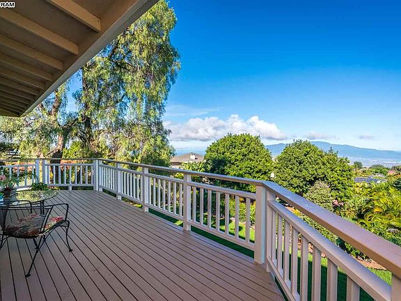 Large 3 bedroom, 2.5 bath home with over 2,300 sq. ft. of living area in Kula Kai with ocean, West Maui mountain, and Haleakala views. There's over a quarter acre of land with both front and rear yards and lots of mature landscaping. Features include hardwood and tile floors, fireplace, propane hot water, dryer, range and oven for efficiency, home office, laundry room with wash sink and storage, and many additional linen and storage closets throughout the home. Both the first and second level of the house have large lanai's. The two car garage has lots of storage and a separate workshop. Kula Kai is one of Kula's most desirable neighborhoods with a mild climate and easy access to neighboring towns.