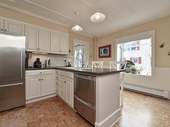 Move right in! This lovely UPDATED Village Colonial has a ton of charm & features a great layout. BRAND NEW Stainless Chefs Appliance Suite by Fisher Paykel includes: DishDrawers, Counter Depth Fridge, Gas Range, Convection Microwave, new high efficiency gas boiler, new roof, new hot water tank, new plumbing, newer electrical (including panel), replacement windows. . . so much has been done! Original details include: china cabinet, clawfoot tub, hardwoods & arched windows. First floor: front foyer w/organized shelves & hooks for coats shoes accessories & more, living room off the kitchen features wall mounted television, sun filled bedroom or office privately located off dining room, large mudroom with tiled floor, bright half bath off mudroom. Second floor: Master w/walk in closet, 2 good sized bedrooms, updated full bathroom w/tile and clawfoot tub with tons of charm, brick patio, perennial plantings, kitchen herb garden. Quiet one way street just a short walk to town/train.