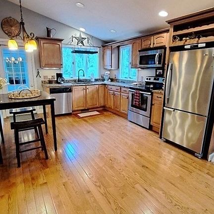 Welcome home to this cozy 2 Bed Ranch located on a quiet street. Home Features open concept kitchen, living room eating area with vaulted ceiling, two bed and one bath on the main level. There is a Large two car garage, with pull down attic access for additional storage. Out back you have a large yard with an inground pool and access to the walk out basement which has a bedroom, bathroom, kitchen, and living room Perfect for your extended family or would make a great pool house area! (House is being sold as is)