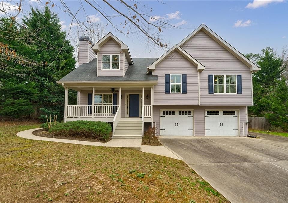 Wonderful property is sought after Boones Ridge! New HVAC 2021! Freshly painted exterior features rocking chair front porch, large back patio, fenced yard and concrete slab ready for a shed or cozy firepit area. Freshly painted interior boosts three levels of living with plantation shutters throughout! Main level has an open concept living room and dining with hardwoods and gas fireplace. Kitchen features breakfast bar, granite countertops and all stainless steel appliances. A few steps up to the second level with three bedrooms, two full bathrooms and laundry. Beautiful large owner's suite with trey ceiling. Master bath with inviting soaking tub, separate shower and expansive walk-in closet with shelving. Third level is the over-sized bonus room/4th bedroom/playroom/home office/2nd living room/extra storage with a private full bathroom and another walk-in closet with custom shelving and separate thermostat. This 4 bedroom 3 full bath Acworth home is a must see!