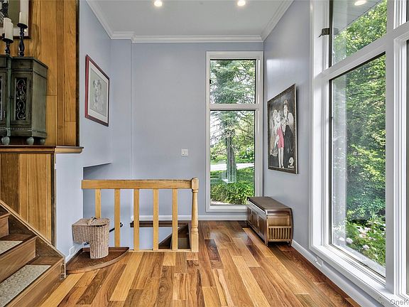 Perched high above the Long Island Sound, this stunning four-bedroom, two-and-a-half-bath contemporary home offers panoramic water views that will take your breath away. Situated on a half-acre just blocks from downtown Northport, the property’s elevated position provides sweeping vistas of the Long Island Sound, creating an ever-changing backdrop of sea and sky replete with stunning sunsets.