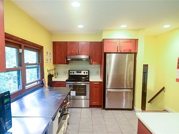 Welcome home to this cheery split level on a quiet cul de sac! THREE LIVING ROOMS! Pride of ownership abounds in the oversized interior, featuring an open floor plan on the first level with combo kitchen/living/dining rooms. Stainless steel appliances, high-quality chef prep tables, and a large island greet you in the kitchen overlooking the comfy living room with original hardwood floors. A few steps up will lead you into the sunny master bedroom with an updated en suite bath and ample closet space. Down the hall, 3 more bedrooms and updated full bath await. The wood fireplace is the focal point of the lower level family room and offers the perfect place to entertain guests. Walk right out to the upper deck and enjoy the view! Back inside, the finished, walk-out basement is the perfect bonus space for an office, home gym, play space, or game room(pool table included!). Only minutes to Taconic, Routes 44 & 55, and all of your retail & restaurant needs.