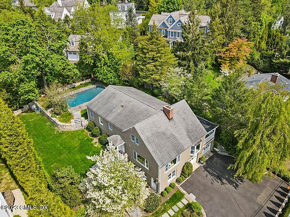 Perched high overlooking the water, in a prime Riverside location, this private oasis has a gorgeous pool and lush landscaping that will make you never want to leave. But if you do, it's minutes from the town of Old Greenwich, with its charming shops, library and Greenwich Point (Tod's) beach. Both the living room with wood burning fireplace and updated kitchen have magnificent views. Four bedrooms, three full baths and a lower level with an in-law suite/playroom with separate entrance. Could be expanded to 3854 sq ft. In the Riverside Elementary, Eastern Middle School District.