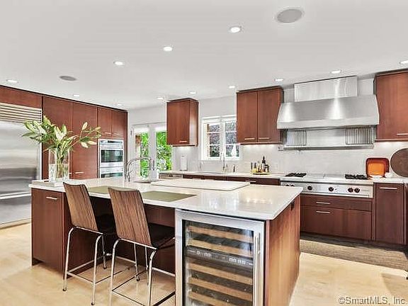 Brownstone 1950's "hostess house" with Modern Classic Interior. This home has it all! From Gunnerson white maple hardwood floors, to the stunning in-ground gunite pool. The main floor features a Poggenppol kitchen with custom built-ins, Crema marble countertops and backsplash and a 10 foot center island. High end appliances from Subzero, Wolf & Fisher-Pakel Double sinks, Grohe plumbing fixtures and custom Chilewich floor mats. The open floor plan was designed for comfort and entertaining. Two living rooms, dining room, a private library (functions as a 3rd bedroom) and a stunning floating staircase with maple treads glass side panels and Edelman leather covered handrails! The second floor features a clear story office/loft, guest bedroom and full bath, and the one of a kind master suite, with fireplace, exterior balcony, master bath with jacuzzi tub and steam shower, plus a custom dressing room and ensuite laundry.Outside you will find a private oasis...Italian limestone patios, electric awning, in-ground custom pool with automatic cover, 12 foot tall Arborvitae wall, stone-lined garden beds and a 16' x 12' garden house.