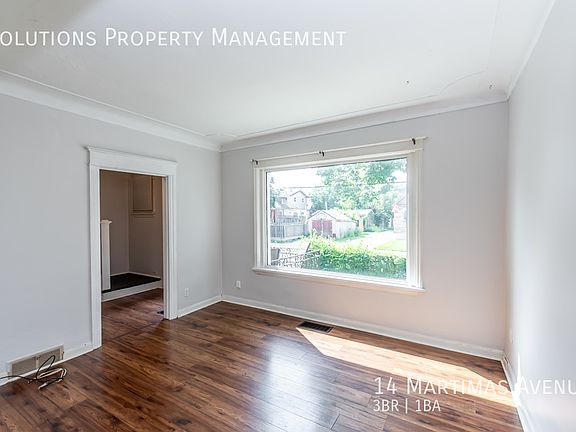 Welcome to 14 Martimas Avenue; a great detached house located in the Crown Point N neighborhood of Hamilton! This bright and spacious home features a great open floorplan, updated kitchen with new cabinetry and countertops, and large fenced in rear yard. The main floor offers loads of space and storage with a den that could function as either a 3rd bedroom or a dedicated office space. Upstairs you'll find two large bedrooms with large closets and the main four piece bathroom. The large basement is partially finished and hosts the laundry, a bonus three piece bath with shower and a hobby area. Outside, you'll find the parking and detached garage at the back! (perfect for that man cave you've been searching for!) Great location as well with proximity to shopping, transit, and easy highway access. Reach out today to book your showing; this one will not last long! **Rent includes parking only. Utilities and lawn/snow maintenance are the responsibility of the tenants**