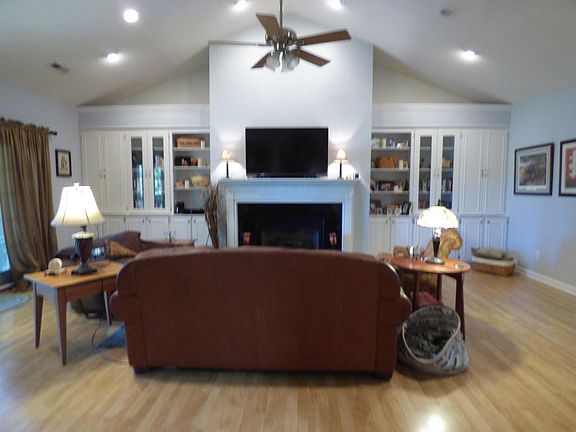 Breathtaking golf and water views from large covered patio in private gated community. Lovely all brick home on one level with split bedroom design for guest privacy. Cathedral ceilings in living room, with fireplace, built-ins, skylights and lots of windows to enjoy the beautiful setting.