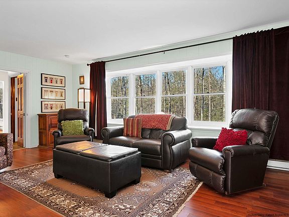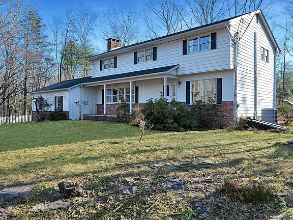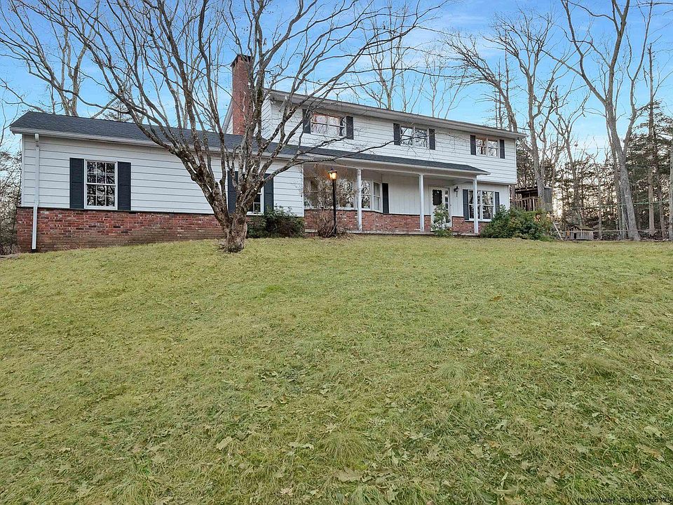 Spacious, light, bright Colonial, set on a rise overlooking woods, a short drive from Woodstock village center. Located on a peaceful street, this comfortable property boasts four spacious bedrooms and two bathrooms, along with two first floor half-baths, making it perfect for large group gatherings, or those who enjoy having ample space. Oak floors run throughout the home, which is heated and cooled with high-efficiency, low-cost heat pump technology. The two inviting living rooms provide plenty of space for relaxation and entertainment, ensuring that everyone can find their own cozy corner to unwind. One of the highlights of this home is the impressive feature brick fireplace, which serves as a focal point in the main living area. Whether you're snuggled up with a book on a chilly winter evening, or enjoying a gathering with loved ones, this fireplace creates a comforting ambiance that is sure to impress. The kitchen, with ample storage, opens to a casual dining area with sliding doors onto a large, glass-sided sunroom. The home also has an additional living room, currently set up as a formal dining room, but which could also make an ideal studio, or home office. The four generously sized bedrooms, one of which is currently set up as a home office, provide ample privacy and space for everyone in the household and guests. The dual aspect, primary suite offers a private oasis with two walk-in closets and an ensuite bathroom, providing a peaceful sanctuary after a long day. Outside, the property showcases a well-manicured yard and newly built deck, offering the perfect space for bbqs, relaxation and connecting with nature. This spacious home also offers a first floor laundry and a large, attached two-car garage. A full, dry basement with high ceilings and windows, is ready to be finished into whatever you might imagine. Schedule your private tour today!