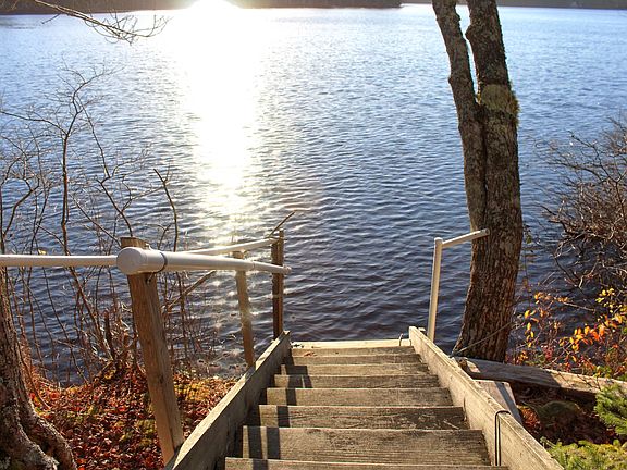 10+ Acres of LAKEFRONT living including your own 2.7-acre ISLAND on gorgeous JONES POND in the Schoodic Peninsula contain a stylish modern home as well as a lovely guest cottage just steps away in a woodsy area over the garage. The homes are sited on a peninsula with approximately 1500 feet of lake frontage. Bar Island, included with this property, the largest island on the lake, has 1,600 feet of shore frontage & is completely wooded with ledges excellent for swimming. The house features a cathedral ceiling with two floors of picture windows on the lake side to provide lots of light & views of sunsets over the lake. Off the dining room is a tall screened side porch surrounded by mature flower gardens with more views of the lake. Short steps at the water's edge lead down to a private cove--perfect for swimming and kayaking. Full-system power to both buildings is provided by a solar panel array on a separate building with a brand new bank of batteries and backup generator. Both homes are completely comfortable with the existing electricity. A new pole on neighboring property could provide conventional power should a new owner desire. Inviting walkable woodland paths around the homes lead to a secluded undeveloped swimming area with a flat sloping swimming cove. The other side of the peninsula includes another 6+ acres of woods fronted by rocky & reedy shore and marshland where migrating birds, warblers, great blue herons, ducks, beavers, otters. and osprey are regularly sighted. LAKEFRONT HOME; GUEST COTTAGE; PRIVATE ISLAND. Additional 60+ adjacent acres available (MLS 1548276). A truly AMAZING offering!