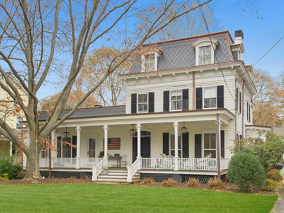 Set in the heart of the Cos Cob community, this enchanting 1868 beauty is set on a side-walked street a short walk to school, the Greenwich Water Club and the train. This home features stunning high ceilings and large light-filled windows. A brand new kitchen sparkles with white marble counter tops and stainless steel appliances. The family room boasts a vaulted ceiling, built in cabinets, fireplace and floor to ceiling windows, leading out to the front porchand spacious tree filled backyard.Five generously sized bedrooms plus another bonus room and a lower level playroom. New slate roof with copper flashing and Yankee gutters all built to historical standards. Four zone HVAC system, new high efficiency gasboiler and hardwood floors.