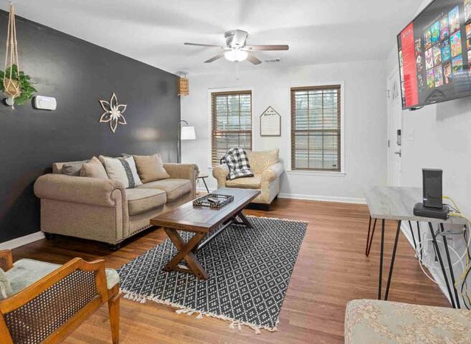 Experience comfortable living in this lovely fully furnished ranch-style house located in a peaceful neighborhood near downtown Newnan, GA. With 3 bedrooms, 2 baths, and 1130 sq. ft. of space, this home offers a cozy retreat for you and your family. The master bedroom features a king bed with a memory foam mattress, ensuring a restful sleep every night. Enjoy outdoor relaxation and entertaining on both the garden patio and the deck patio. The property also includes a convenient carport and a BBQ grill for delightful outdoor cooking experiences. With its prime location, you'll have easy access to Hartsfield-Jackson International Airport, Ashley Park, CTCA, Piedmont Hospital, and the 1-85 highway, making travel and local amenities just minutes away. The renter pays utilities 700 credit score or above First-month rent as deposit. 2 Small pets are allowed. Extra deposit for a pet. The renter is in charge of yard maintenance.