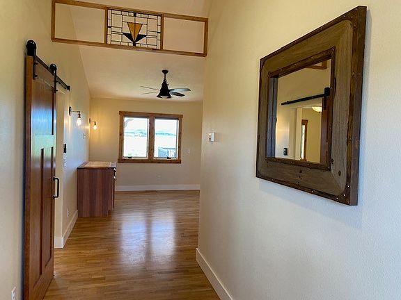 Wonderful one-level home on 5 acres less than 10 minutes from Great Falls. This newer home has a large kitchen, master suite, barn doors, a deck with a pergola, and a finished garage with a gas hook-up for heat. There are "catch water" barrels on each downspout to water the numerous plants on the entire 5 acres. The shed is huge and has been wired for electricity with two windows and a loft. There are two 1500-gallon cisterns that feed the home. Currently, they use Prairie Water to deliver - which works out to be about 30.00 every two weeks for two people. The propane tank is rented through Breen oil for 56.00 a year. Please call Amy Haverlandt at 406-231-0389 or your real estate professional for more information.