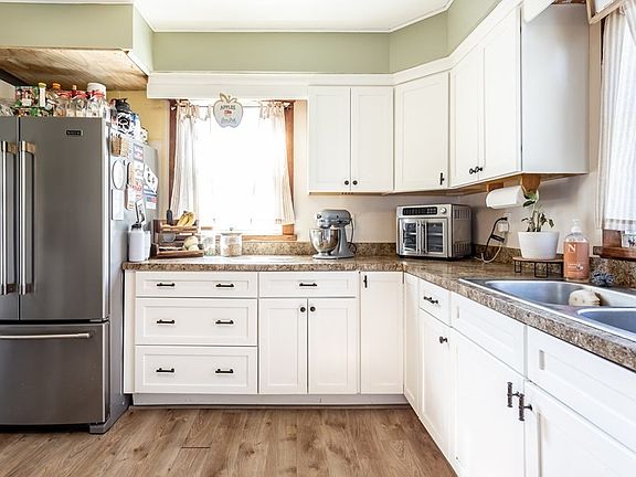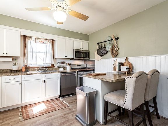 This charming bungalow is located in a desirable neighborhood, offering an inviting atmosphere that is perfect for family living. Boasting 3 spacious bedrooms and 1 full bath, this home has plenty of space to accommodate everyone's needs. Hardwoods throughout the bedrooms & living area add warmth & character to the space. The front porch provides the perfect spot to enjoy your morning coffee or relax after a long day. The bright kitchen with eat-in breakfast area is perfect for casual meals, while the living/dining room combo is ideal for more formal gatherings. The cozy fireplace is perfect for chilly evenings, providing ambiance to relax and unwind in.The updated bathroom boasts a beautifully tiled shower adding a touch of luxury& elegance to your daily routine. The detached garage provides ample space for parking or additional storage. Finished shed with electric in the back yard. Don't miss your opportunity to own this lovely bungalow.