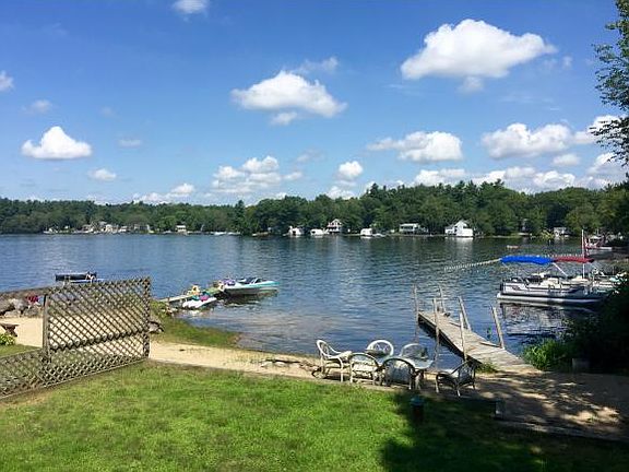Have you ever dreamed of owning your very own Summer Getaway? Well, here's your chance to make those dreams a reality with this spacious waterfront cape on Angle Pond. Bring your bathing suits and towels and hit the pond right from your front door. Enjoy the beautiful views and your own sandy beach. Private beach and dock for all your summertime swimming, boating and waterski/wakeboard or tubing fun! The views can also be enjoyed from the front deck or the front family room that is loaded with windows facing the pond. This cape style home features vaulted ceilings and skylights and plenty of space for family and friends. There are 2 bedrooms downstairs and 3 guest rooms on the balconied second floor. Don't let this dream slip by!