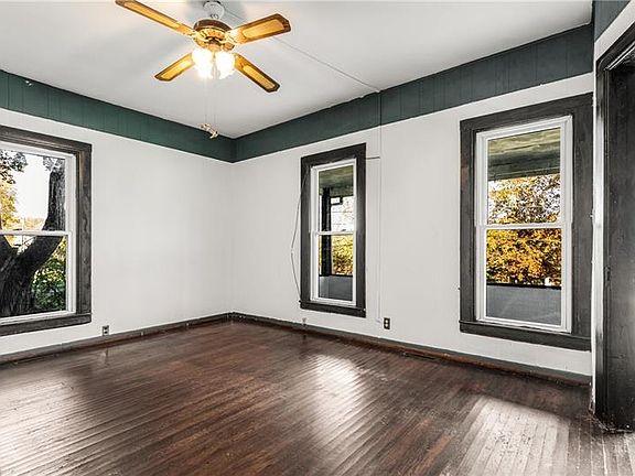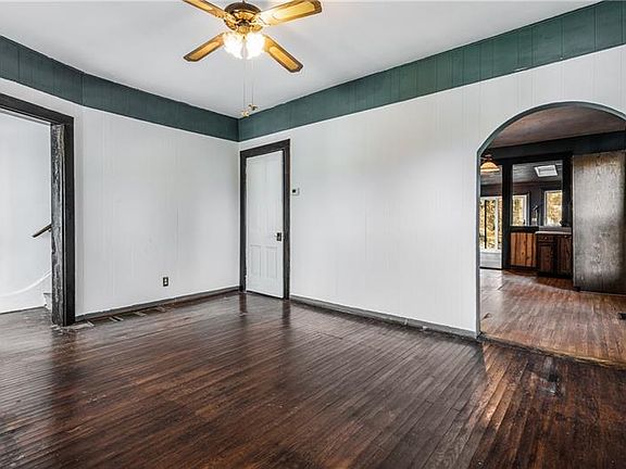 So much potential in this 3-bedroom farmhouse. Sitting on 1.23 acres! The covered front porch leads into the spacious living room area. This room has hardwood floors and tall windows to allow for natural light. The large kitchen has a high ceiling and lots of cabinet space- or you can change things up and make it your own! The full bathroom with clawfoot tub and stall shower is just off the kitchen. Along the back of the house is a great family room- complete with pellet stove and two doors out to the private yard! Upstairs, there's a beautiful decorative fireplace in the master bedroom. Two additional bedrooms on the 2nd floor. Outside, there's a 2-car detached garage and lots of space for additional parking. This home is equipped with a tankless water heater, metal roof on the main part of the house, and updated electric. A 1-year AHS Home Warranty is also included in the sale.