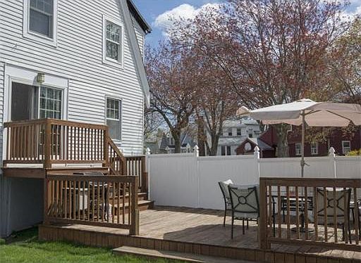 Move in Ready, North Quincy, very bright updated colonial. Beautiful corner lot, front to back fireplaced living room. Beautiful hardwood floors, updated kitchen with granite counter tops and stainless steel appliances and breakfast counter which is open to dining room. Approx 1/2 mile to N Quincy T. Approx 6/10th mile to Wollaston beach. Back yard is gorgeous and fenced in. Great patio for entertaining. Bonus room which is currently being used as 4th bedroom. Sump Pump and french drain. Newer heating system and electrical. Roof approx 4 years old Hot water heater approx 1 year old Heating system 2 zones. Newer Anderson windows in upstairs rooms. Working fireplace. Recently painted. Lovely enclosed front porch.Storage in Basement. Walk up Attic. Francis Parker Elementary, Atlantic Middle School and North Quincy High School are nearby