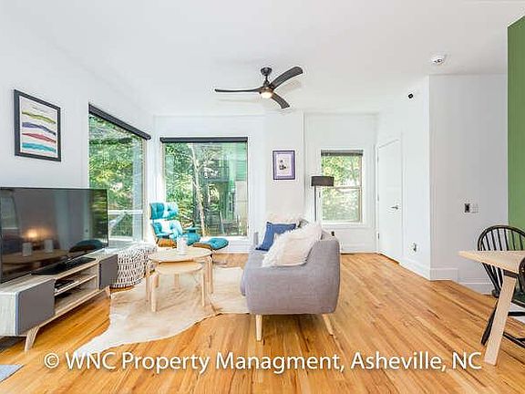Green Built Home in Prime West Asheville Location! FEATURES: 3 bedrooms, 2.5 baths, approx 1,440 sf. Large open floor plan with large picture windows and great natural light, red oak floors, brushed nickel fixtures throughout. Extended height maple kitchen cabinets, slate countertops, and Energy Star stainless appliances. Subway tile bath and glass door shower with mosaic tile floor. 3 decks (two full 24 foot decks on main floors and an 8 foot perch on top floor overlooking creek). 9 foot ceilings vaulting to 13 feet on top floor with clerestory windows and walk-in closet. LED lighting throughout and optional security system (tenant responsible for optional monitoring service). Custom aluminum cordless shades throughout and solar shield rolling panels for large picture windows on main floor. Central heat and A/C (electric heat pump). Washer and dryer included. Fenced yard. Home is Energy Star & NC Green Built certified. LOCATION: Friendly neighborhood with many other green built homes; walk or bike to French Broad River, Greenway, Carrier Park, Hall Fletcher Park, Haywood Rd shops and restaurants; minutes to downtown Asheville. LEASE TERMS: Available May 1. One year lease with option to renew. Income must be at least 3 times rent OR 36 times rent in savings. 1.5 month security due at lease signing. First month due at move-in. Cosigners not permitted. Pets will be considered for a one-time fee of $250 per pet; 2 pets max; some homeowners may have specific pet requirements such as breed and weight limit. $55 per adult applicant for credit / background check. TO APPLY: Submit an application thru the WNC Property Management website. Applications will be processed on a first-come, first-served basis, and there is no charge for the application if we do not process it. Offered by WNC Property Management.