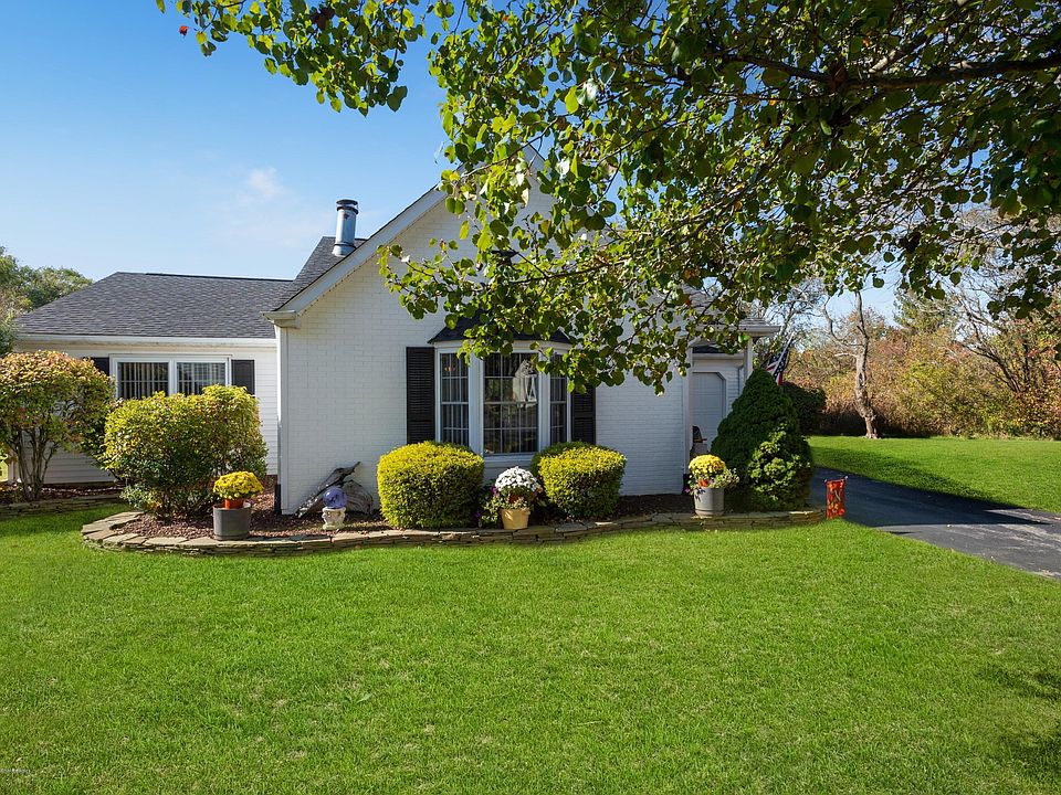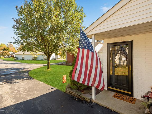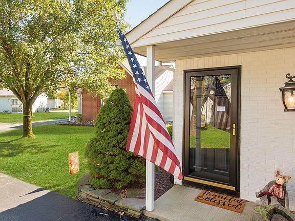 Move right into this beautiful Greencastle model loaded with upgrades in sought after Surrey Downs. New carpeting throughout. Pristine condition and ready for you! Large LR/DR Combo in entryway with vaulted ceiling,recessed lighting and wood burning fireplace. Beautiful updated kitchen with lazy Susan, extra cabinetry, open to living room/dining room. Sunroon/Den with sliders to private deck ,12x8 electronic awning , lots of lush grass and views of open land. Charming, private and peaceful! Brand new roof, updated windows, baths, and sheetrocked garage with shelving. Located at the end of the cul de sac. Enjoy all the amenities this fabulous 55+ adult community has to offer!