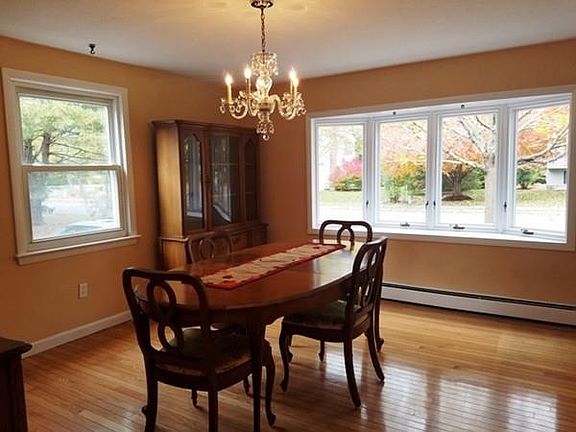 Very private tree lined corner lot showcases a completely refreshed, move in ready Gambrel style, 3 bed, 1.5 bath home. Side entry includes enclosed porch. Eat in kitchen includes all upgraded stainless steel appliances, solid surface counter & a light filled green house window overlooking the large back yard. Formal dining room features a gleaming hardwood floor. Living room offers lots of light through the bay window & a cozy fireplace to enjoy in cooler months. Additional bedroom on the first floor can also be used as an office. Half bath completes the main floor. Second floor has 2 oversized bedrooms & upgraded full bathroom. The unfinished basement houses laundry area & offers tons of storage. Beautifully landscaped yard includes 2 car garage & storage shed. A fabulous location with quick access to Routes 495 and 95, a short ride to the Mansfield commuter rail, and close to shopping. Don't miss turning this gem into your dream home. OH Sat 11/17 10:30-11:30 & Sun 11/18 11:15-12:45