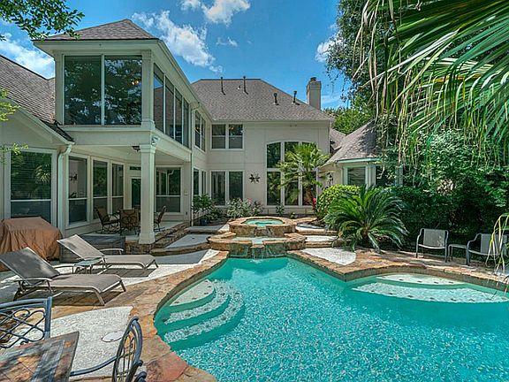 NO HARVEY DAMAGE! HAVE IT ALL! Beautiful custom situated on oversized, greenbelt lot on cul-de-sac street-ultimate privacy! FRESHLY PAINTED; NEW wood floors; Desirable floor plan w/2 BR down, large kitchen open to den, paneled study, both formals, game + media rooms up + flexible liv area; Architectural accents throughout; Private outdoor setting w/pool & spa, yard space, mature landscaping! Centrally located! Neighborhood pavilion, park, pond, tennis courts! Walk/ride to top-ranked schools!