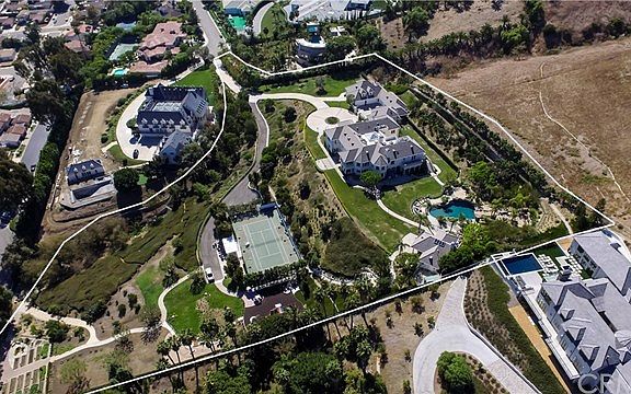 This sprawling custom Estate, with panoramic ocean & mountain views, is located in the highly coveted Bear Brand Ranch. This magnificent home with over 15,000 sq.ft. sits on a massive 5.5 acre lot, has 12 garages plus an RV garage, tennis court with view deck, utility storage, and a magnificent resort style grotto pool with slide and waterfall, next to a pool house with fireplace, bath, outdoor kitchen and barbecue area. The interior of the home has 9 bedrooms, 5 up, 2 down, and 2 in maids apartment. There are 12 baths and 3 powder rooms. The grand entry is two stories high and opens up into marble foyer which features a 7 foot motorized crystal chandelier. The family room has 11 foot ceilings, fireplace, entertainment center, and a 200 gal. reef aquarium. The gourmet kitchen has built in Sub-Zero refrigerator and freezer, two stainless steel dishwashers, warming drawers, 11 foot custom cooking center with matching copper clad hood, and Bosch double ovens. There is a large Granite topped island and custom cabinetry, plenty of storage, walk-in pantry, and breakfast area. The open floor plan leads into the formal dining room, living room, and family room. The main Master suite has 22 X 13 walk-in closet and an elegant tub room, with jacuzzi and his and her wash basins.. The home also includes, a gymnasium, home theater, laundry room, 4 fireplaces, and in-wall stereo sound in the entertainment areas, security system throughout, 3 staircases, even an elevator.