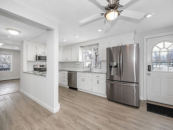 - Features: Ceiling Fan(s), Flooring - Laminate, Dining Area, Countertops - Stone/Granite/Solid, Countertops - Upgraded, Exterior Access, Recessed Lighting, Remodeled, Slider, Stainless Steel Appliances, Gas Stove, Lighting - Pendant
