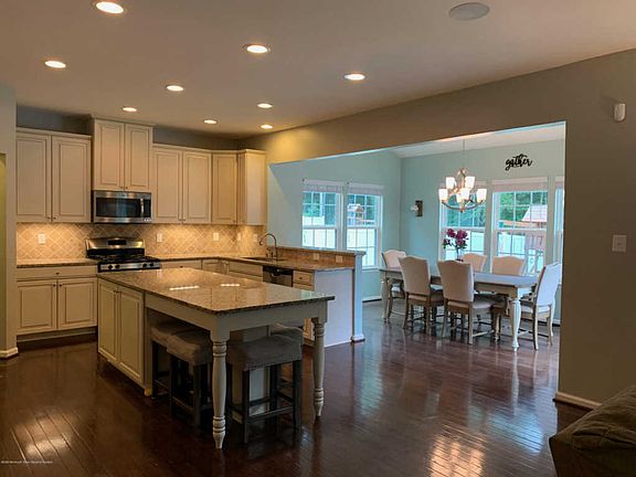 Five year young colonial with 4 bedrooms 2.5 baths and a full partially finished basement. This home is located near the end of the cul-de-sac and backs up to the woods for plenty of privacy. Upon entering you will be greeted with an open foyer and living room with beautiful dark hardwood floors. The kitchen and family room are open with hardwood flooring throughout, large center island, SS appliances and a great breakfast nook/morning room. Upstairs are 4 large bedrooms including a master bedroom suite with huge WIC, full bath with double sinks and shower stall. The large basement is partially finished and insulated. The backyard is waiting for your personal touch to add to the already great newer in-ground pool. Featured Listing.