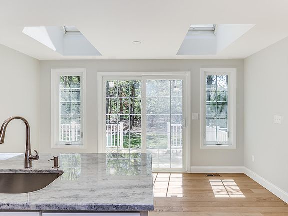 Experience the elegance of this completely remodeled sprawling ranch home, boasting 3 bedrooms and 2 luxuriously appointed bathrooms. The modernized kitchen gleams with pristine white shaker cabinets, resplendent granite countertops, high-end stainless steel appliances, and a cozy breakfast area.The living room radiates with brightness from the skylights, providing a warm ambience enhanced by the welcoming gas fireplace. The versatile front room can serve as a chic dining space or as a comfortable family room/home office.Venture down the corridor to find three well-sized bedrooms. The primary suite is generously proportioned, featuring multiple closets for ample storage and a sliding door that opens to the tranquil back deck. Its attached bathroom imitates a mini spa with a stunningly tiled shower and a double vanity for added convenience.Two more bedrooms along with a hallway bathroom provide an ideal setup for welcoming guests.A plethora of recent enhancements include a new heating system, stylish flooring, upgraded bathrooms and kitchen, as well as new windows. Situated in an ideal location, this home offers easy access to shopping, dining, and the captivating beaches of Barnstable. Experience the best of renovated living in this beautifully updated ranch-style home.