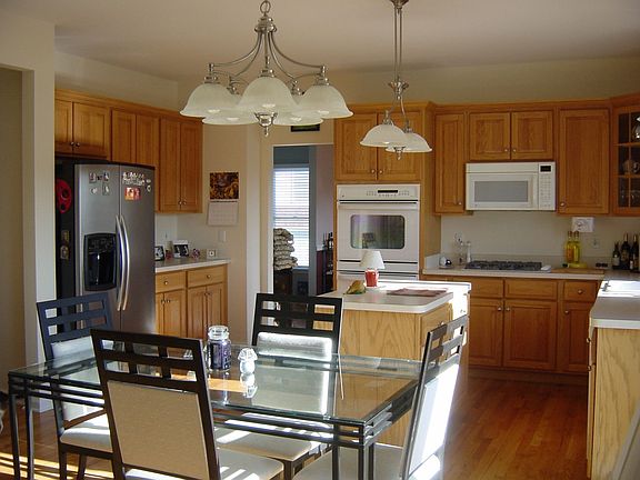 Like new,2 story foyer ,hardwood floors,eat in kitchen,center island,stainless refrigerator,oak 42" cabinetry,warm and inviting fam. rm /stone woodburning firepl. Walkout basement . Pretty views.