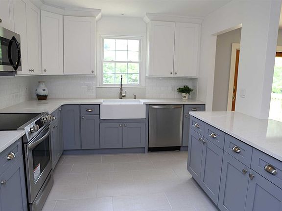 Style and sophistication define this recently renovated 1,842 SF 3 bedroom, 2 bath raised ranch set on close to a half acre of park-like property on the semi-circle of N. Farm Drive. Experience the WOW factor the moment you enter to see inspired details at every turn. Steps to the top level reveal rich, dark hardwood flooring, interior painting from a designer's palette, and a kitchen to knock your socks off: two-tone cabinetry, quartz counter tops, farmhouse sink and pass-through to the dining room. A bright, open flow between the living room and the dining room with sliding glass doors to the brand new deck provides comfortable spaces for easy living and gracious entertaining. The master bedroom has a modern bath with tiled walk-in shower with rain head while two additional bedrooms share their own brand new full bath. Downstairs, a crisp white family room with wainscoting and plush carpeting, laundry and mechanical room, and access to the 2-car garage. Outdoors, dine al fresco on the brand new deck, which overlooks the flat backyard where towering mature trees create a private backdrop. All just minutes to shops, schools, parks, Metro North and Route 22.