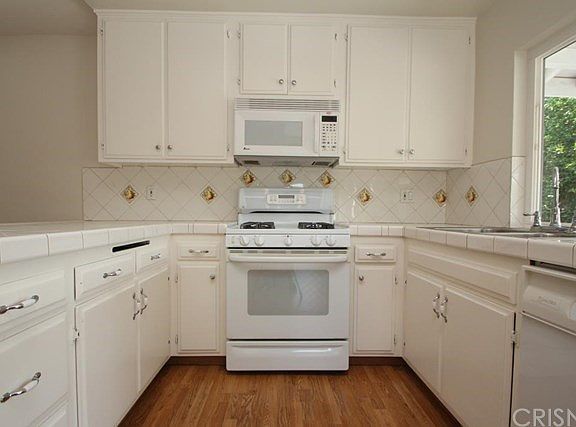 Located in Oak Park, CA ideally less than a mile away from Chaparral Park, this 3 bedrooms, 2 bath has an elongated front yard and includes hardwood flooring throughout entire home! Living room features a fireplace with open space leading to a dining area with window and kitchen. Lovely white kitchen includes tile counter top, with built-in appliances and charming garden window with plenty of cabinet space! Master Bedroom has huge window allowing for beautiful natural lighting and a walk-in closet with a LOT of shelves and space! Updated bathroom includes shower stall with gorgeous modern wood accents on vanity. All bedrooms have hardwood flooring, large windows, and ceiling van. Second bathroom is also updated with shower over tub and modern wood accent styled vanity! Home has a spacious backyard with covered patio, great for entertaining! Also includes a 2 car garage with washer and dryer inside as well. Prefers no pets