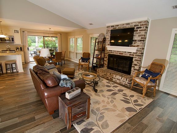 One of Sea Pines best streets - the Live Oak neighborhood offers larger lots with majestic golf and lagoon views. Three bedroom, three and a half bath ranch style home with plenty of open living space. Beautifully updated. Fenced back yard with pool.
