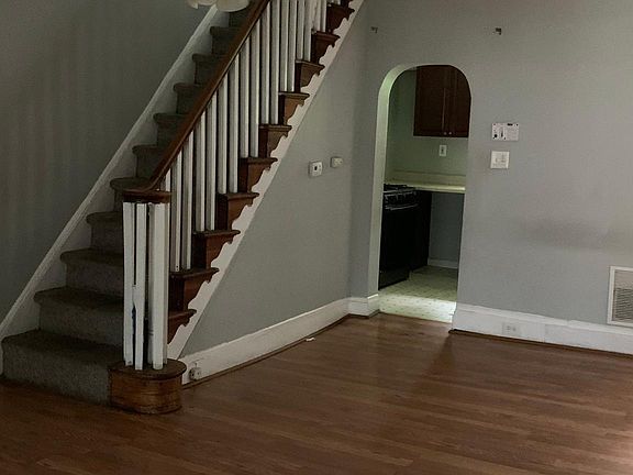 This beautiful 3-bedroom row home features an indoor porch, engineered new hardwood floors throughout the first floor, a spacious kitchen that has a range, refrigerator, and double bowl sink. Cabinets are beautiful mahogany. Upstairs you will find three bedrooms. Two bedrooms have been newly carpeted, and the master bedroom has hardwood floors. The bathroom has been renovated and outfitted with a new tile floor, new vanity, new sink, and new mirror. New interior doors have also been installed. Check out the spacious back yard that you get with this house!