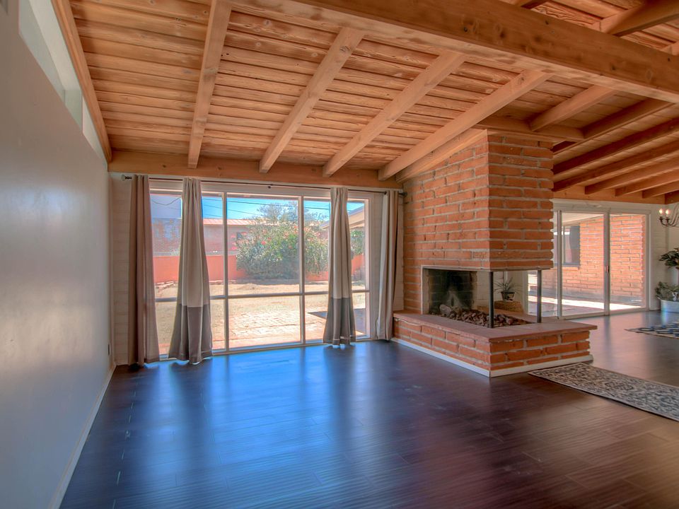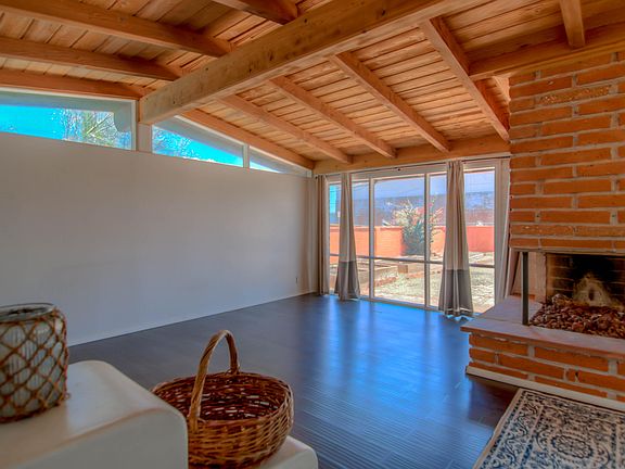 Unique home in historical San Rafael Estates (house qualifies for reduced taxes); community pool; tankless hot water heater; dual cooling; large laundry room; split floorplan; three-sided gas fireplace; high ceilings with open beam rough-sawn wood; mature fruit trees; roof insulation installed 2007 with latest re-coating in 2014; AC, evaporative cooler, and hot water heater installed 2007; separate fenced dog yard; detached storage shed and workshop.