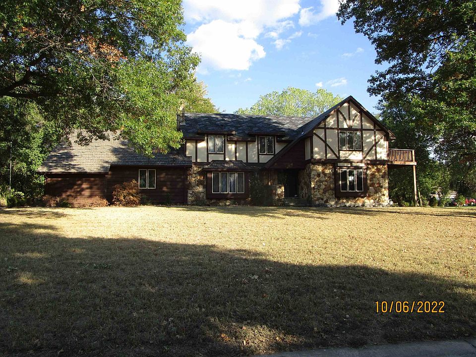 Spacious and extortionary 2 story Tudor home located in Shadybrook Farms an exclusive east side neighborhood located in the Andover School District. This home is located on over half an acre wooded lot with an in ground pool. Sit on your master bedroom balcony and watch the wild turkey on your property, while over looking your wooded back yard has a bath house, and large deck with a gazebo. Upstairs the master suite has a sitting area with his and her closets, double sinks, and balcony. There is two more large bedrooms with on suites and walk in closets, along with an additional bedroom and guest bathroom. The main floor has a large sunroom with a tiled floor, lots of windows, and french doors that leads out to the back yard. This home has loads of potential and would make a great family home. Call for your showing today.