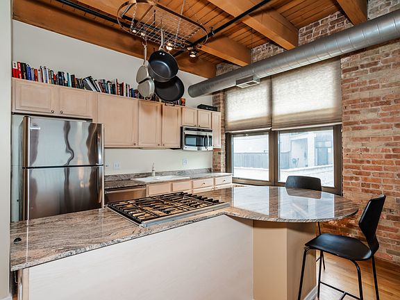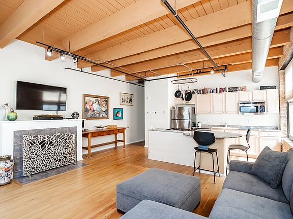 Spacious and bright 1 bed / 1 bath condo in the heart of the West Loop! This corner unit receives plenty of natural sunlight and features a huge open floor plan with high timber ceilings, interior exposed brick, beautiful hardwood floors, gas fireplace and a 17ft private outdoor balcony. The kitchen is in excellent condition and features a large island with granite countertops and brand new SS appliances. The bedroom features new carpet and a spacious walk-in custom closet. New AC condenser installed in 2019 and laundry in-unit. Located in The Art House Lofts - a boutique elevator building (brand new elevator recently installed) and the building includes a huge outdoor common rooftop deck with city views perfect for entertaining guests. 1 extra storage cage included! The location is unbeatable just steps from public transportation, Whole Foods, Mary Bartelme Park and all of the best dining and nightlife the city has to offer! Rental parking easily accessible nearby if needed. HOA dues include high speed Google Fiber internet. Schedule a showing today!