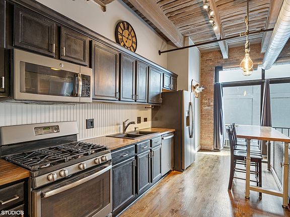 West Loop lovers will be thrilled to be in this boutique elevator building with an unbeatable location. Mixing life, art, energy, and home, the Art House building offers one of the most beautiful and intriguing living experiences around. Pay attention to the detail in this beautifully crafted masterpiece. Fully updated 1 bedroom/1 bathroom timber-style loft that has everything you can ask for. The unit has an amazing floor plan, extremely elevated ceiling heights, large windows, hardwood floors, stainless steel appliances, reclaimed wood kitchen countertops, built-in closets, in-unit laundry, double vanity with a soaking tub, a built-in electric fireplace, and more. This unit has the lowest assessment fees in the building, and includes WiFi as a bonus! Absolutely gorgeous furnished common area sundeck that you will love on beautiful sunny days. Comfortably close to Mariano's, Whole Foods, McDonald's HQ, 90/94, 1 block from Randolph St restaurant row and Fulton Market, Mary Bartleme Park, Soho House, Google HQ, and Brooklyn Boulders climbing facility, & 1 mile from United Center. A short walk, ride, or bus to the heart of the loop. Perfect for full-time living or in town. A storage unit is included and Dog/Cat friendly! LOW ASSESSMENTS!