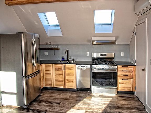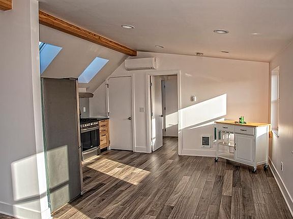 Unique apartment on top of a house in the North Tabor Neighborhood. Great home office opportunity. Private sunset-side deck Air conditioning Laundry in unit Off-street parking spot Gas range, slate countertop All new appliances and dishwasher 5 opening skylights Lots of south light, blinds already installed Close to bus line (20) and MAX (red line), I-84 ramps QFC, The Tannery, Tabor Tavern Storage closet in unit. Rent includes gas, water, garbage. Renter to pay electricity. Dog allowed on case by case basis. No smoking/vaping. Apartment is above a family with a dog, and some compatibility issues will be looked at if you have a dog. Looking for a renter that is considerate about loud noise after 10 as we live downstairs. I am a professional property maintenance person and built the apartment so maintenance issues will be dealt with immediately. Shown by appointment. Applicants will need to do a credit/background check through Cozy.