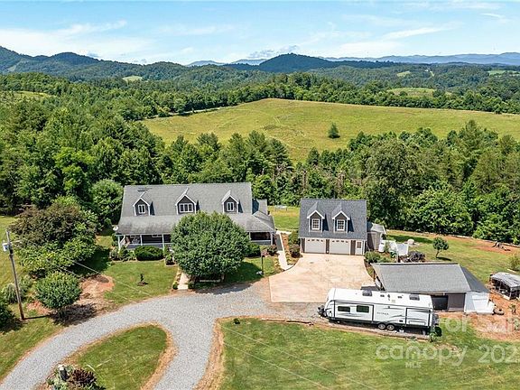 Endless possibilities: Mini-farm offering 4.72 acres w/spacious Cape Cod, panoramic mountain views, in-ground pool, oversized dbl garage w/workshop & complete 1BR apartment. Bonus features include 2 extra building sites that can be used for privacy buffer, resold by buyer, or utilized as family compound, airbnb cabins, home studio or barn ($10,000 infrastructure in place with existing 27x52' foundation ready for your build). Enjoy big skies & ample gardening space in this south-facing home offering a peaceful setting w/rocking chair front porch & private screened-in back porch. Stunning panoramic mtn views from nearly every room w/inviting fireplace, high ceilings, lots of natural light & a flowing open floor plan. Elegant Corian kitchen has SS appliances, center island, hot water on demand & big farm sink. No restrictions & a location only 20mi to Asheville, 12mi to Weaverville & 7mi to Marshall. High speed cable; pre-home inspection on file; Qualified buyers can purchase w/ 5% down.