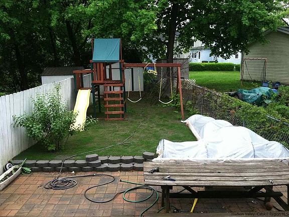Great in town 3 bedroom 2 bath Colonial with updated kitchen including a pantry, hardwood floors, ample closets and charm. Condensers and duct work have been installed for central air, just needs a compressor. Kitchen updated in 2011 and new furnace in 2007. An amazing location 10 minutes from New Paltz and Poughkeepsie. Minutes to the center of town with shops and restaurants as well as close to the Elementary and Middle School, and a number of parks, as well as the rail trail. So convenient to everything. Fenced in back yard with lots of play equipment. Act fast to be in by Spring.