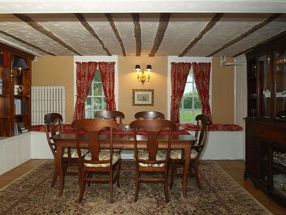 Complete info: http://14newstreet.ePropertySites.com - Built in the mid 1800s this Greek Revival home was designed by then well known architect Aaron Hudson, who also built many homes in the area. Local legend has it that this residence was once the coachman's quarters for the Black horse Inn, thus explaining the less formal interior. FIRST FLOOR Original architectural features abound and include hand hewn beams in the dining room along with wide pumpkin pine floors in most of the house. A window seat-ledge runs around the perimeter of the rooms. Notice the wide plank oak flooring in the family room - very unusual. A wood burning stove heats the space nicely. The kitchen is steps away. and has been adapted for today's lifestyle without sacrificing an authentic appearance. Stainless steel appliances, wood floor and stone wall blend seamlessly. A spacious side entry mud room catches all the overflow of daily life and provides extra storage. Every old house needs a cozy den, and this one is located a couple of steps from the family room. Newer custom built-in cabinetry unifies the space - perfect for TV or reading. SECOND FLOOR Enter the large foyer from the grand exterior staircase and step into a living room through a pair of pocket doors. A decorative fireplace insert and mantel accent the space. Of particular note are the wide floor boards and grand windows. A pair of glass paned doors lead into the Master Suite consisting of bedroom, study and bathroom. THIRD FLOOR At the top of the staircase is a landing that wraps around the area and can accommodate furniture. A skylight brightens the space, and there's even a built-in ladder to access the roof. Three bedrooms and a bath are located here, each having a sloping ceiling punctuated with eyebrow windows. The bath features a claw foot tub and hand shower, pine floor and eave storage area. BASEMENT A small basement is accessed off the kitchen. A new boiler was installed in 2009. PROPERTY AND GROUNDS A picturesque setting, private and inviting, complete with picket fencing on both sides of the house, perennial gardens, magnificent mature trees and storage outbuilding. New Street is only one block from the hustle and bustle of town, yet off the beaten path, an easy walk to restaurants, shops and elementary school.