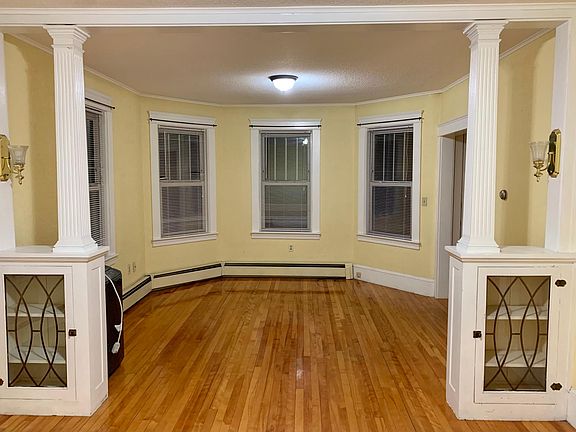 Spacious 1st floor apartment in a two-family house, available now. The eat-in kitchen features a stove, refrigerator and dishwasher along with abundant cabinet space and built-in features. There's an enclosed sunroom/porch off the kitchen. Both bedrooms have plenty of closet space. There are washer and dryer hookups inside the apartment. Utilities are the tenant's responsibility, the heat and hot water are oil. First and last month's rent required to move-in. One year lease. Owner pays for water and sewer, City trash and recycling pickup.