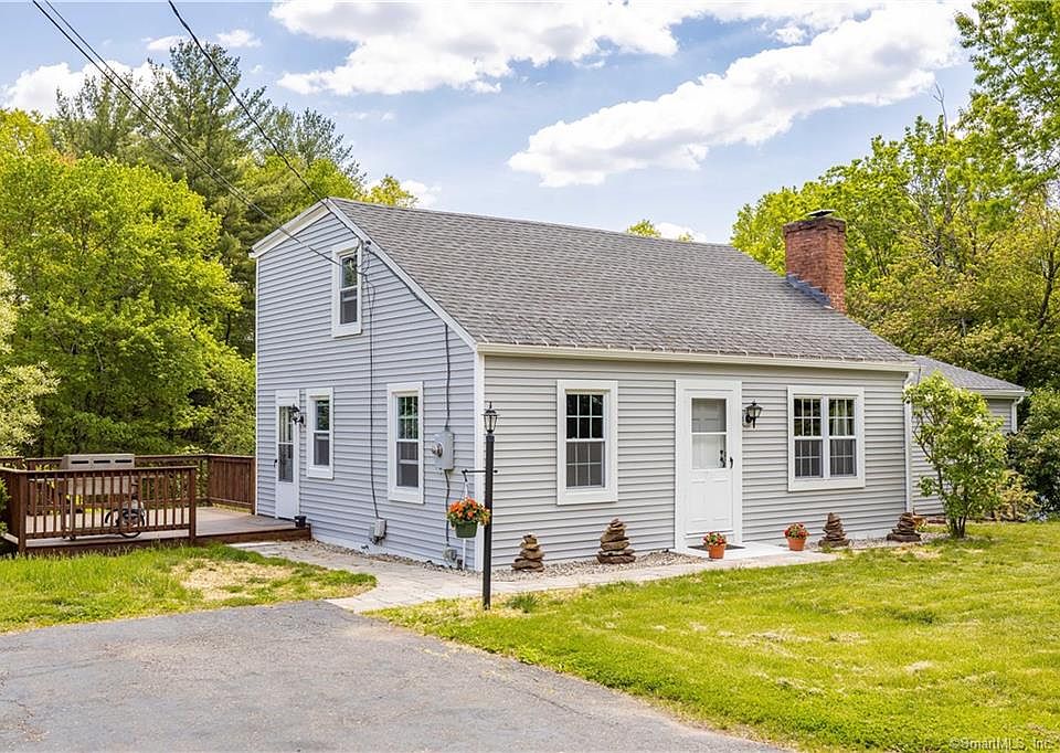 East Granby Expanded Cape Cod adjacent to Trails to Rails Awesome location w/82 mile Rails to Tails multi use rail trail a few steps from the property line Less than a 5 minute drive to Granby Center & amenities. Local breweries, wineries, hiking, biking, Granbrook Park, Ski Sundown, Lake Congamond, Bradley Airport, commute roads all located nearby Very cool floor plan lends itself to many different lifestyles. The 1st floor has an expanded addition w/2 additional bedrooms & separate entrance to this newer addition so great possibility of inlaw section or home office. There is a 3rd bedroom on the 1st floor & the entire upstairs is now the master bedroom w/beautiful new full bath. Fireplaced Living Room w/Pellet Stove insert. Kitchen open to Dining Room & updated full bath on 1st floor. Recent updates inc brand new well, brand new roof, siding/gutters. Newer boiler/hot water heater. Paver walkways, updated vinyl windows, generator hookup, EV elec car hookup adjacent to driveway for charging, well equipment updated, SS appliances, updated blown-in insulation. Hardwood flrs throughout most of home but new carpet in some bedrooms. Spacious deck overlooks grassy backyard that's nicely sized for backyard BB'Q's & summer fun This move-in ready home is avail for immed occupancy. Move right in for summer Tons of value & updates. Fantastic town to live in Please note while there are 4 bedrooms the town card says 3 & septic is designed for 3.